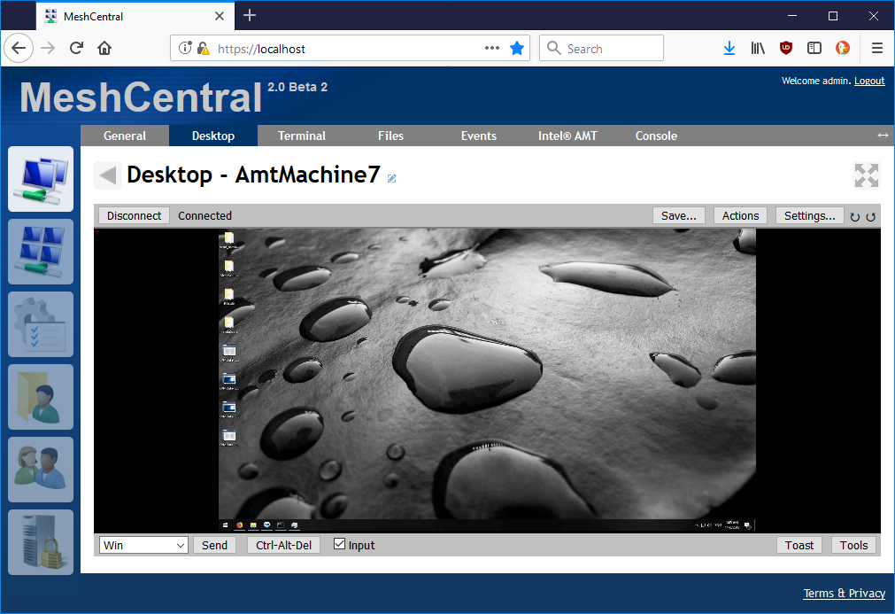 Possibly the most used feature, MeshCentral offers web based remote desktop and terminal. You can take control of any computer in the world from any web browser.